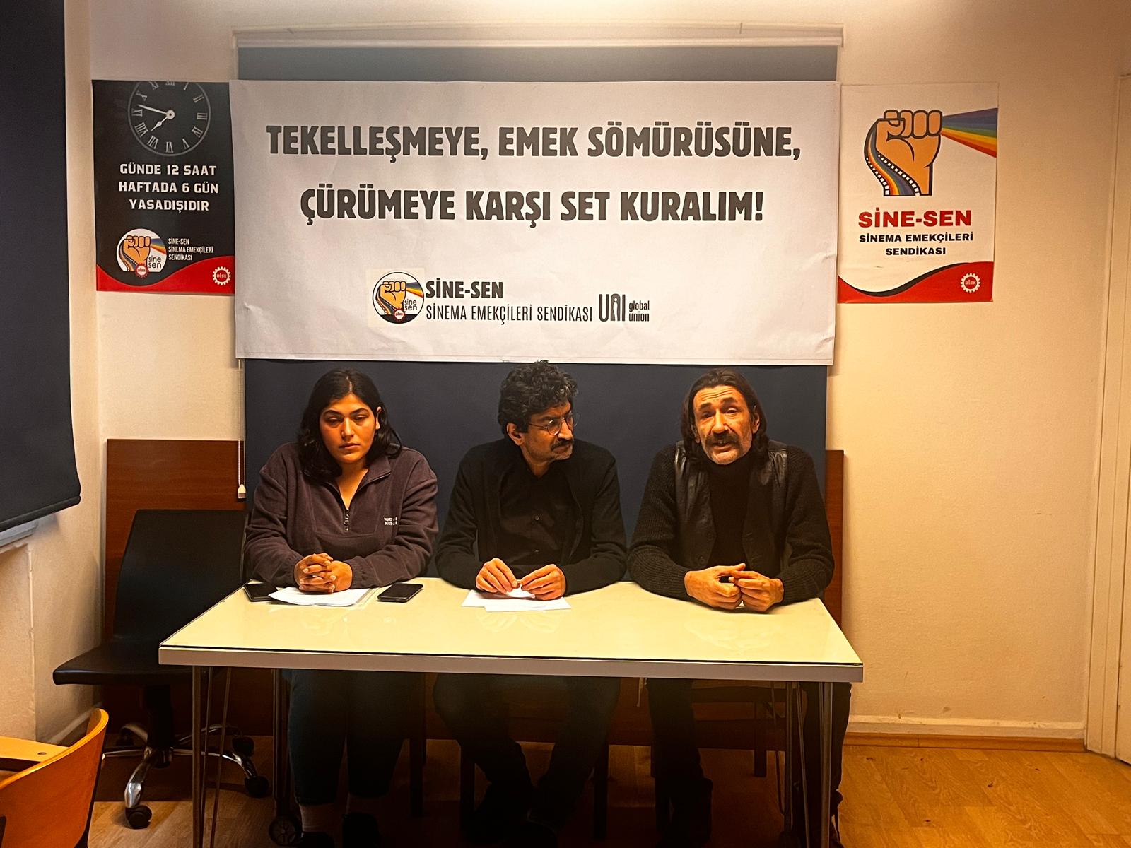 Açıklama metninde, sinema ve dizi sektöründe tekelleşmeye dikkati çekildi. “Rekabet Kurulu’nun bazı yapım şirketleri ve cast ajanslarının tekel oluşturması hakkında başlattığı soruşturma sonrası birçok iddia ortaya atılmış ve magazinsel boyutu nedeniyle medyada geniş yer bulmuştur. Dizi sektörümüz, dünya çapında önemli bir yere sahip olmasına rağmen, özellikle çalışma bakanlığının yeterince denetim yapmaması sebebiyle, hak ihlallerinin en sık yaşandığı alan haline gelmiştir. Dünya dizi ihracatında 3. sırada olan ülkemizin, 2025 yılında ihraç gelirinin 1 milyar dolar olması beklenmektedir. Bu büyük gelirden pay alma yarışı içinde olan ve bugün birbirini suçlayan tekelleşmiş yapıların sadece bir konuda ortak olduklarını söyleyebiliriz. Bu büyük gelirin en önemli üreticisi olan film emekçilerinin haklarına çökmeleri konusunda hemfikirlerdir” denildi.